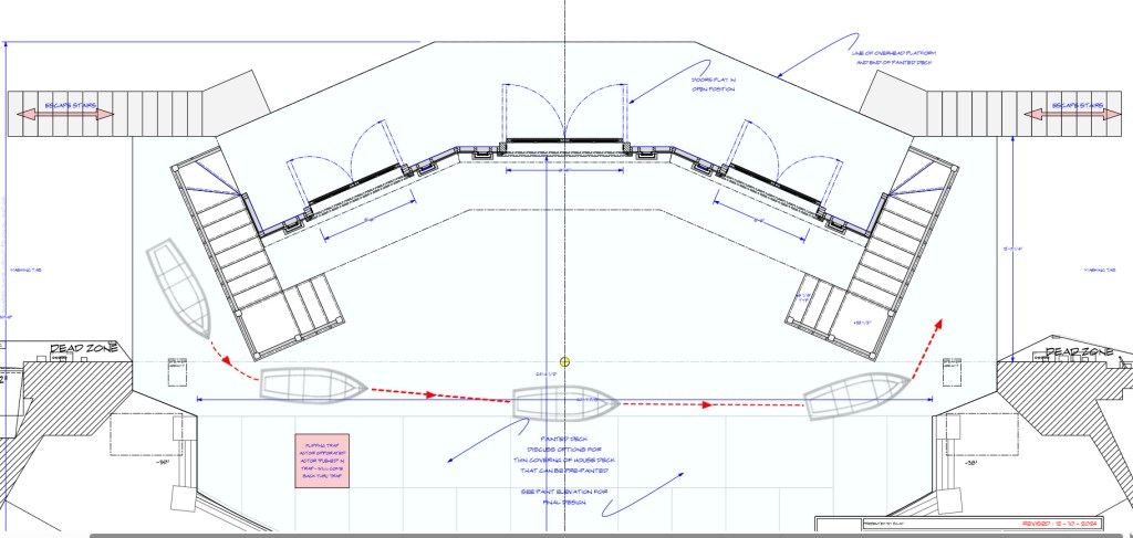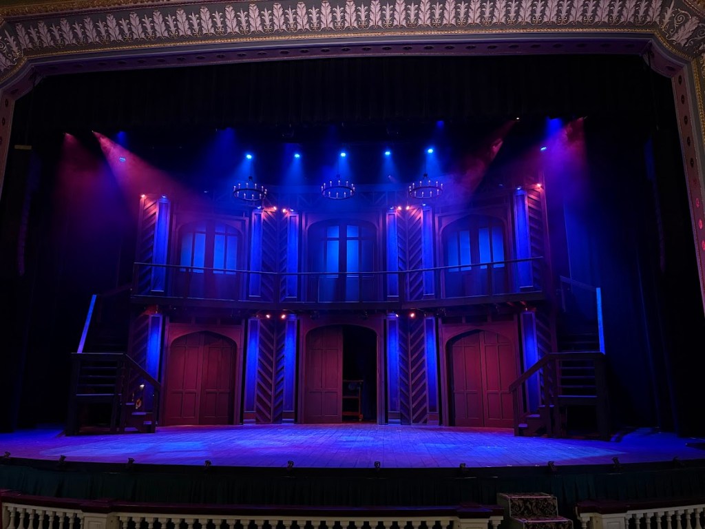 The production called for a world that balanced Elizabethan grandeur with the energy and spontaneity of the original story. My role as Art Director covered everything from the initial design concept through to prop construction, technical drawings, and the final dressed stage. Working within a theatre of the Lucas’s scale and character added both a creative challenge and a unique sense of occasion to the entire production.